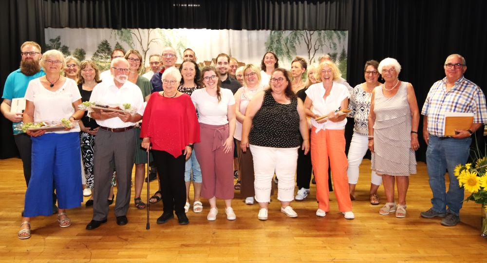 Nach den Grußworten konnte Nadja Kiesewetter vom Landesverband Amateurtheater Baden-Württemberg insgesamt 35 Ehrungen aussprechen und bronzene, silberne und goldene Ehrennadeln mit Urkunden übergeben.